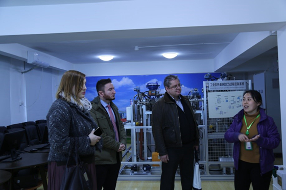 随后,代表团一行参观了学生创新创业基地、电子技术实习基地以及钢铁生产全流程虚拟仿真实践教学平台。通过对学科交叉、航模、MEI机器人实验室,工业过程智能化实验室以及虚拟仿真实践教学软件的观摩,详细了解我院工程型人才培养实践教学方面的情况。在校期间,代表团还参观了校史馆及我校材料测试中心实验室